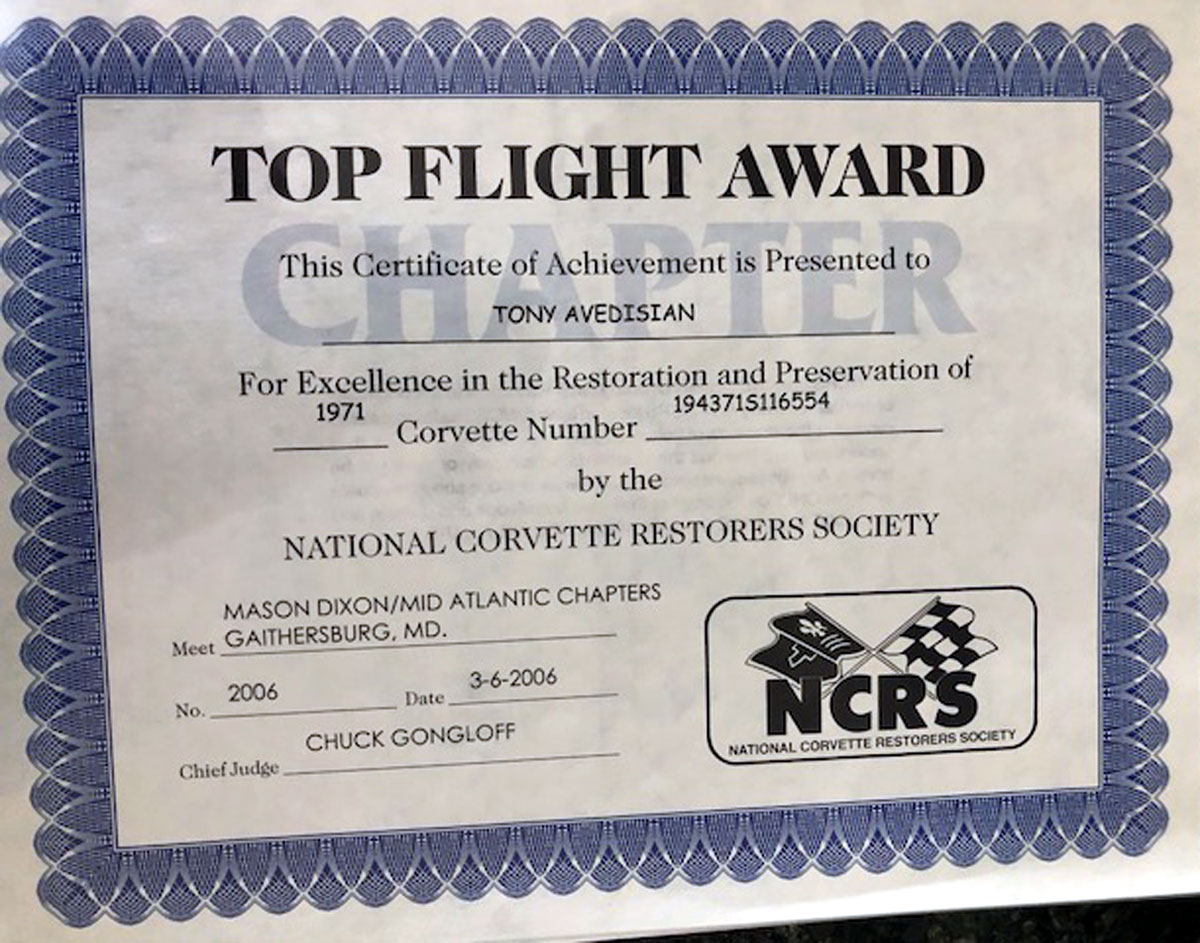 NCRS Top Flight Award and Bloomington Gold Certificate. This investment